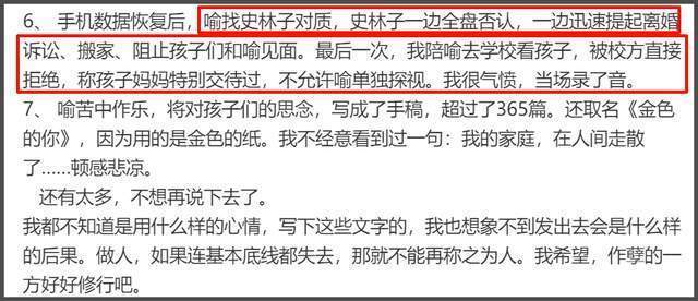 据石头所说,史林子的这些记录曝光之后,喻恩泰找她对峙,她全盘否认,但又迅速提起离婚诉讼,搬家并阻止孩子和爸爸见面,还嘱咐学校老师,不允许喻恩泰见孩子。和此前狗仔爆料,喻恩泰不见孩子一说完全相反。