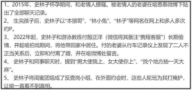 除此之外,史林子还被指出轨游泳教练,也就是有妇之夫付某,被其老婆发现,还在喻恩泰评论区留言曝光。